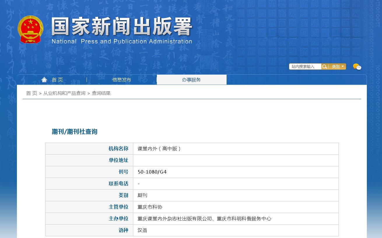 主办:重庆课堂内外杂志有限责任公司
