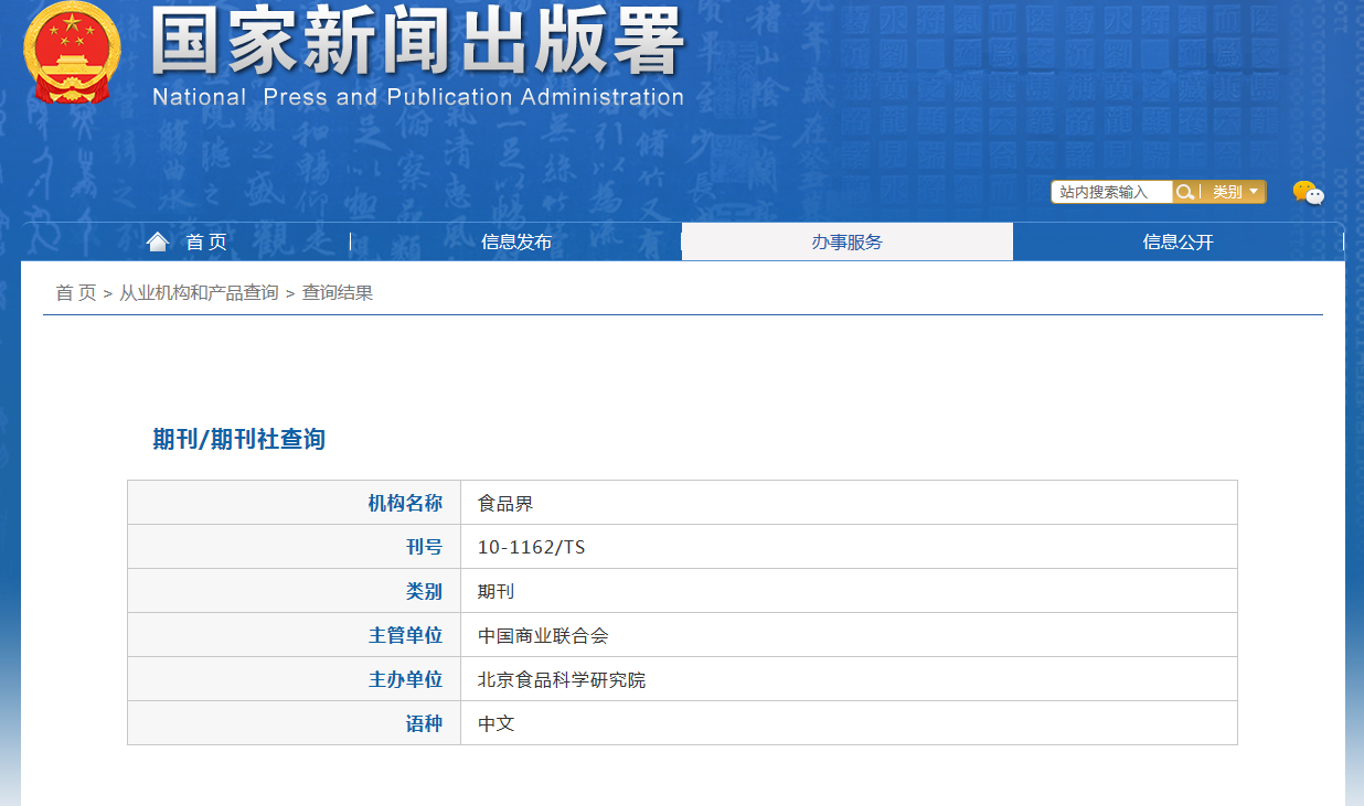 主办:北京食品科学研究院